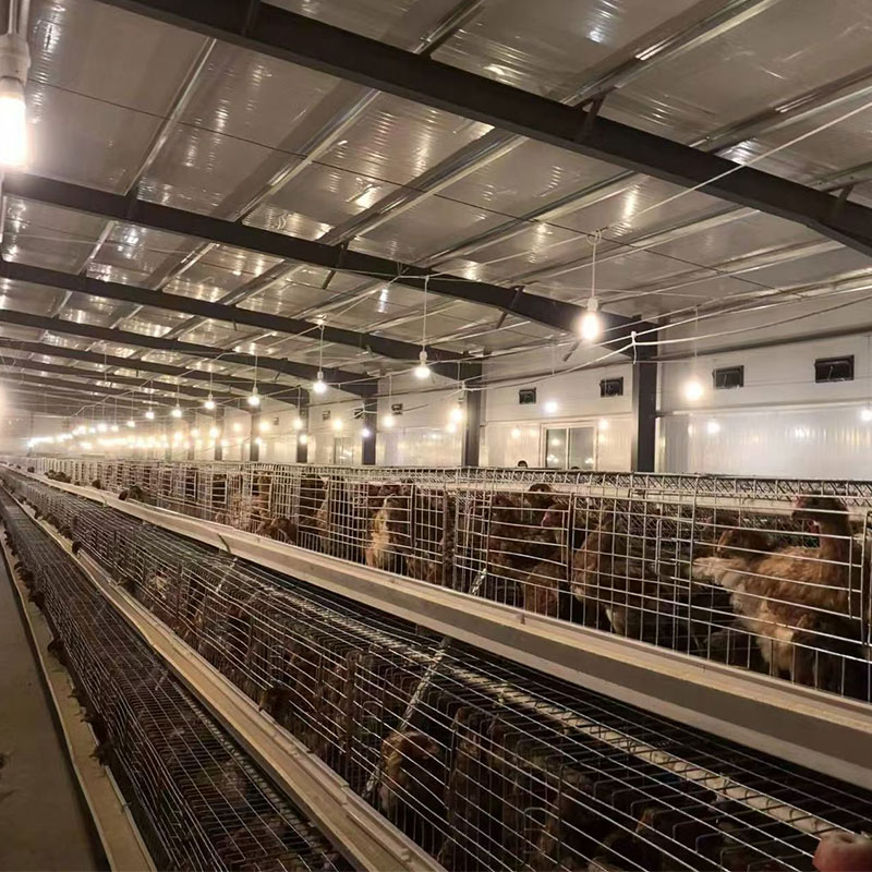 pasang alat pemberian pakan, minum, pembersihan, dan pemetik telur otomatis. Area terbuka yang luas pada kandang ayam kondusif untuk ventilasi dan pencahayaan, dengan pencahayaan merata yang dapat memanfaatkan cahaya alami sepenuhnya, yang bermanfaat bagi pertumbuhan dan produksi telur ayam petelur.